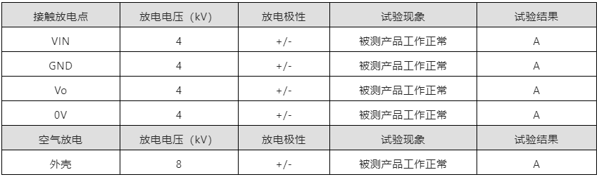 由以上可知,P0505FKS-1W產(chǎn)品在增加外圍電路后,傳導(dǎo)和輻射性能非常好,余量也充足,特別是輻射性能,在沒有增加外圍的情況下試驗(yàn)品都可以過CISPR32/EN55032 CLASS B,只是余量較少;試驗(yàn)品在接觸靜電±4kV和空氣放電±8kV情況下,產(chǎn)品一直正常工作。