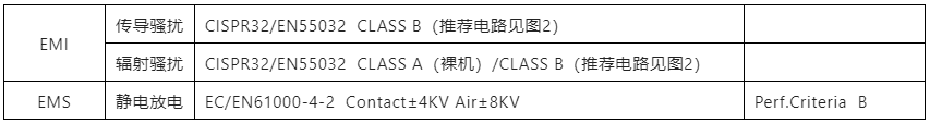 P系列規(guī)格書中EMC要求如表1所示。