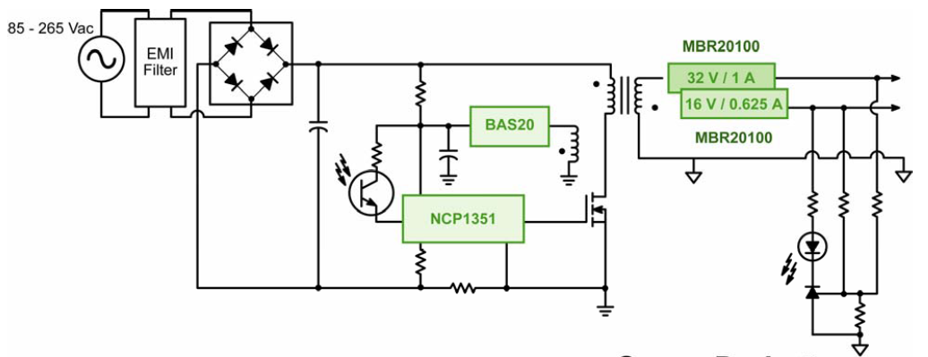 大聯(lián)大世平集團(tuán)針對(duì)目前臺(tái)式打印機(jī)電源市場(chǎng),推出基于 ON NCP1351 的40W 打印機(jī)電源方案,該方案使用 NCP1351 的設(shè)計(jì)為打印機(jī)適配器應(yīng)用程序提供了理想的解決方案。 得益于固定的峰值電流/可變的關(guān)閉時(shí)間架構(gòu),該適配器在額定負(fù)載到輕負(fù)載(包括各種打印機(jī)睡眠模式)下均具有很高的效率以及非常低的空載功耗。它還具有瞬時(shí)提供峰值功率的能力,同時(shí)提供有效的保護(hù)功能,例如鎖存的過(guò)載,短路和過(guò)壓保護(hù)。 此外,獨(dú)特的NCP1351架構(gòu)與最新的打印機(jī)適配器相比,可將高壓輸入電容器減少三分之一,從而為相同性能節(jié)省了成本和尺寸。NCP1351實(shí)施固定的峰值電流模式控制(也稱為“準(zhǔn)固定”噸),根據(jù)輸出功率需求調(diào)節(jié)截止時(shí)間。 在高功率條件下,開(kāi)關(guān)頻率會(huì)增加直到達(dá)到最大值。 該上限取決于設(shè)計(jì)人員選擇的外部電容器。 在輕負(fù)載條件下,關(guān)斷時(shí)間會(huì)延長(zhǎng),NCP1351會(huì)以較低的頻率工作。 隨著頻率降低,所有與頻率相關(guān)的損耗的貢獻(xiàn)相應(yīng)降低(驅(qū)動(dòng)器電流,漏極電容損耗,開(kāi)關(guān)損耗),自然提高了各種負(fù)載水平下的效率。