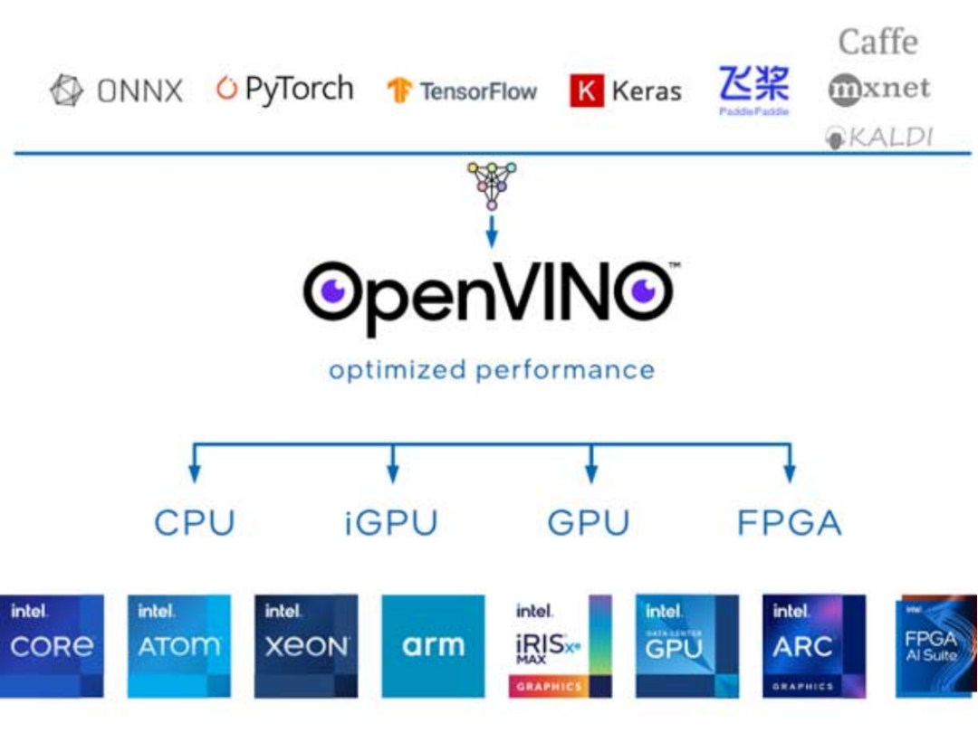英特爾通過各種芯片支持邊緣人工智能應(yīng)用,這要?dú)w功于其 OpenVINO 軟件工具包,該工具包優(yōu)化了深度學(xué)習(xí)模型以在 CPU 和 GPU 上運(yùn)行。