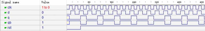 `timescale1ns/100ps//仿真時(shí)間單位/時(shí)間精度 moduledff_tb(); regclk,rst,d; //需要產(chǎn)生的激勵信號定義 wireq,qb; //需要觀察的輸出信號定義 //初始化過程塊 initial begin clk=0; rst=0; d=0; #50 rst=1; end always#10clk=~clk;//產(chǎn)生輸入clk,頻率50MHz always#15d=~d; //module調(diào)用例化格式 dffu1(//dff表示所要例化的module名稱,u1是我們定義的例化名稱 .clk(clk),//輸入輸出信號連接。 .rst(rst), .d(d), .q(q),//輸出信號連接 .qb(qb) ); endmodule