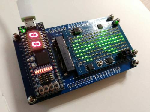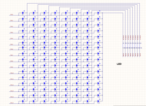 LED點陣由于小腳丫STEP FPGA的管腳充足,可直接連接在管腳上,便于進行驅(qū)動。板上集成16*8共128個LED,組成的LED陣列。