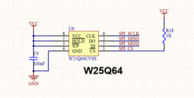 板上集成了一個串行Flash W25Q64,容量64Mbit,SPI接口。