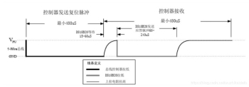 主機(jī)拉低總線后在500us處釋放了總線,總線被上拉電阻拉高