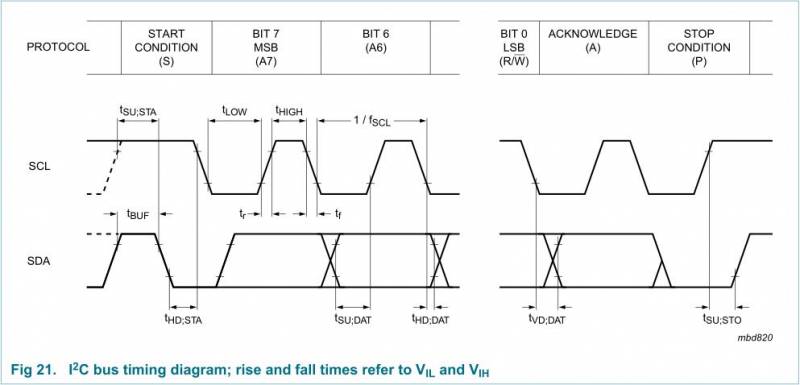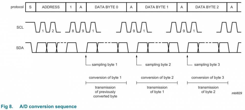 第二次的時序如下圖:通過上面的介紹大家應(yīng)該對如何驅(qū)動PCF8591進行ADC采樣有了整體的概念,還有一些細節(jié)就是I2C通信的時序明細,如下圖